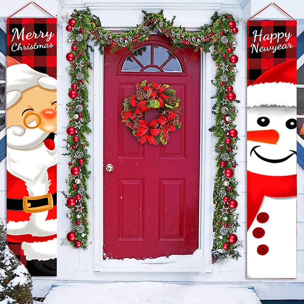 1 пара баннеров на дверь для рождественской вечеринки, украшение Санта-Клауса, пары 30x180 см, ткань Оксфорд, реквизит для фотосъемки