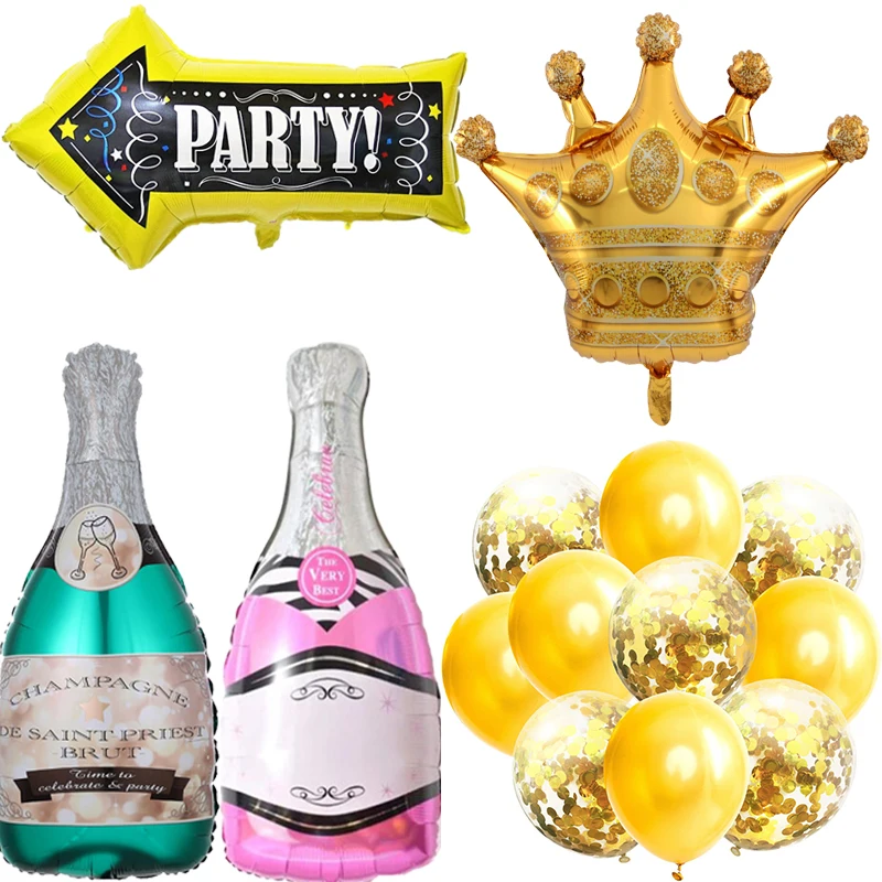 1Pc Whisky Bottle/Champagne Cup Balloons Happy Birthday Party Decorations Kids Adult King Crown/Wedding Baby Shower Balloon