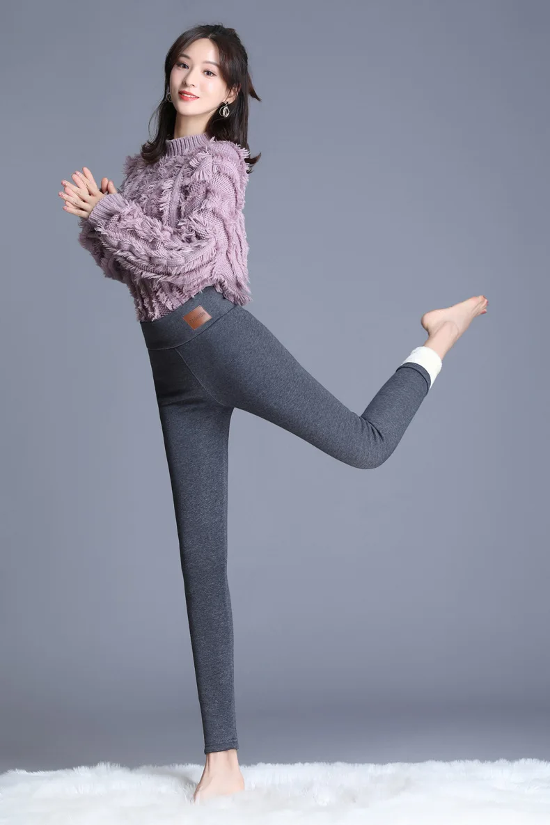 Зимние леггинсы, женские облегающие леггинсы с подкладкой из овечье...