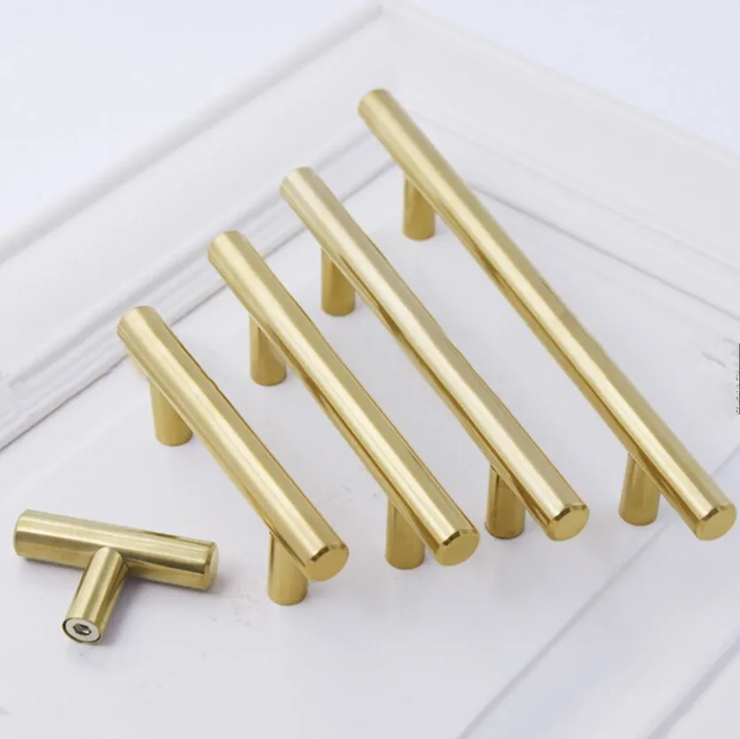 Т-образная ручка из нержавеющей стали черного и золотого цвета для ящиков шкафов, шкафов, дверных ручек 50-350 мм