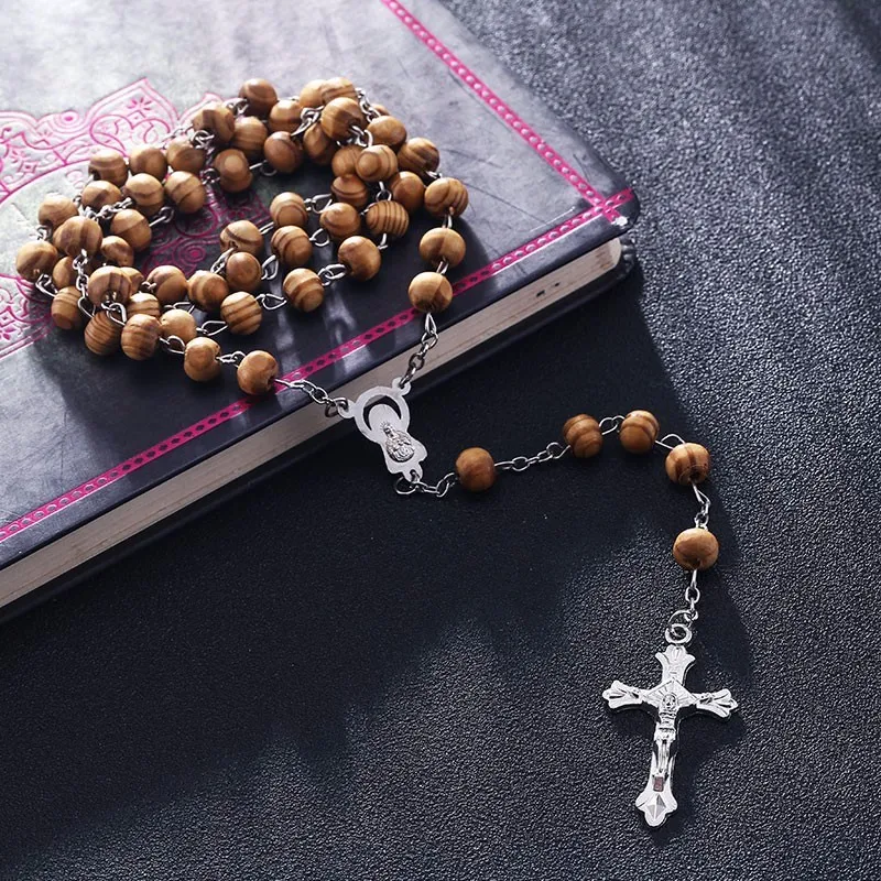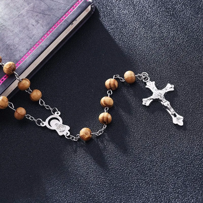 2018 религиозный деревянный крест ожерелье, ожерелье-четки из бусин...