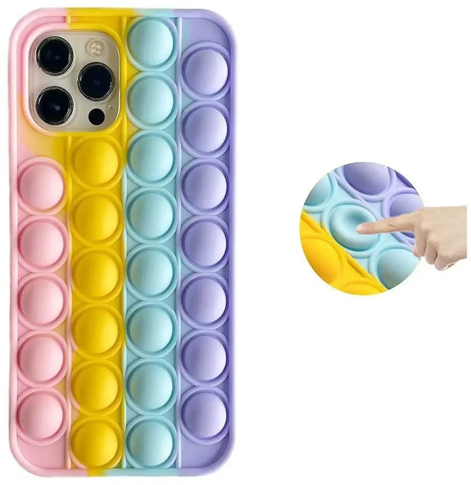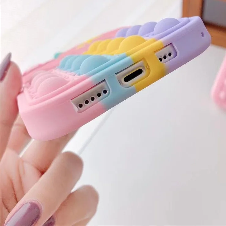 Чехол для IPhone Kawaii Забавный Милый Забавный силиконовый чехол Радужный силиконовый чехол для телефона с пузырьками