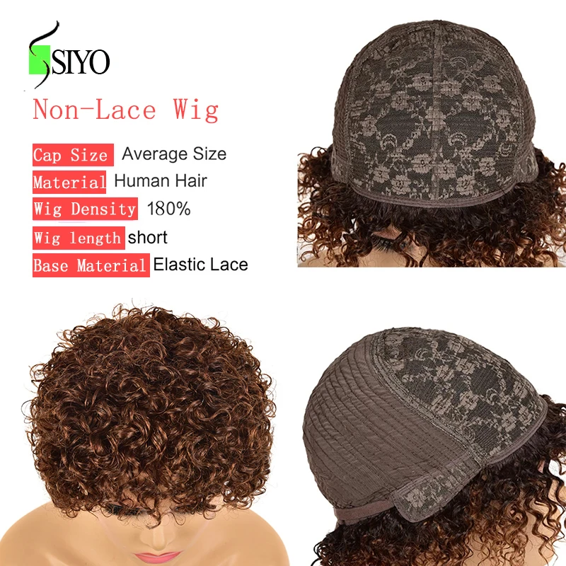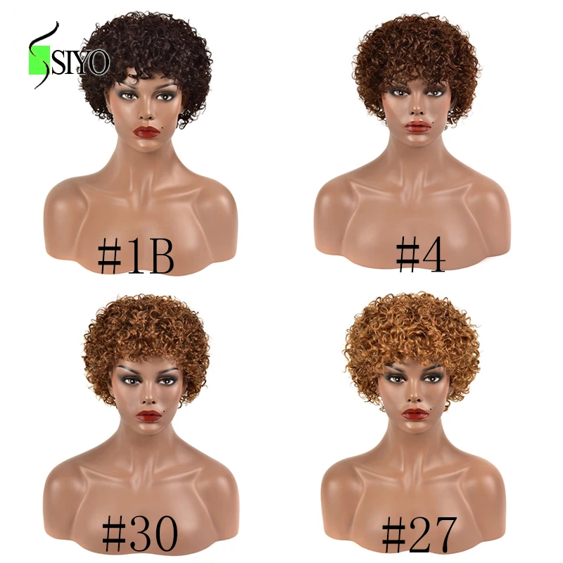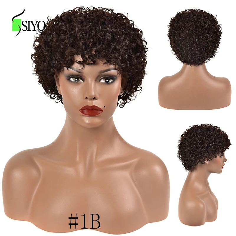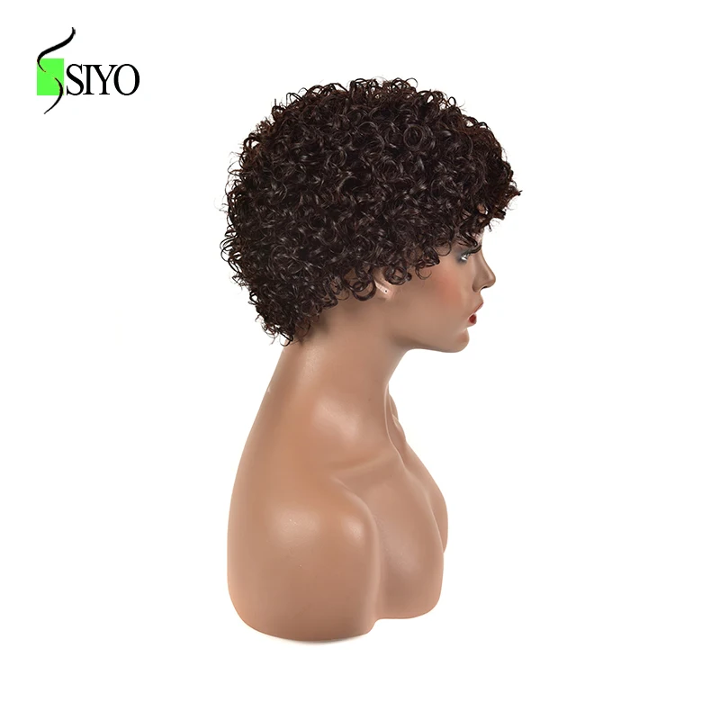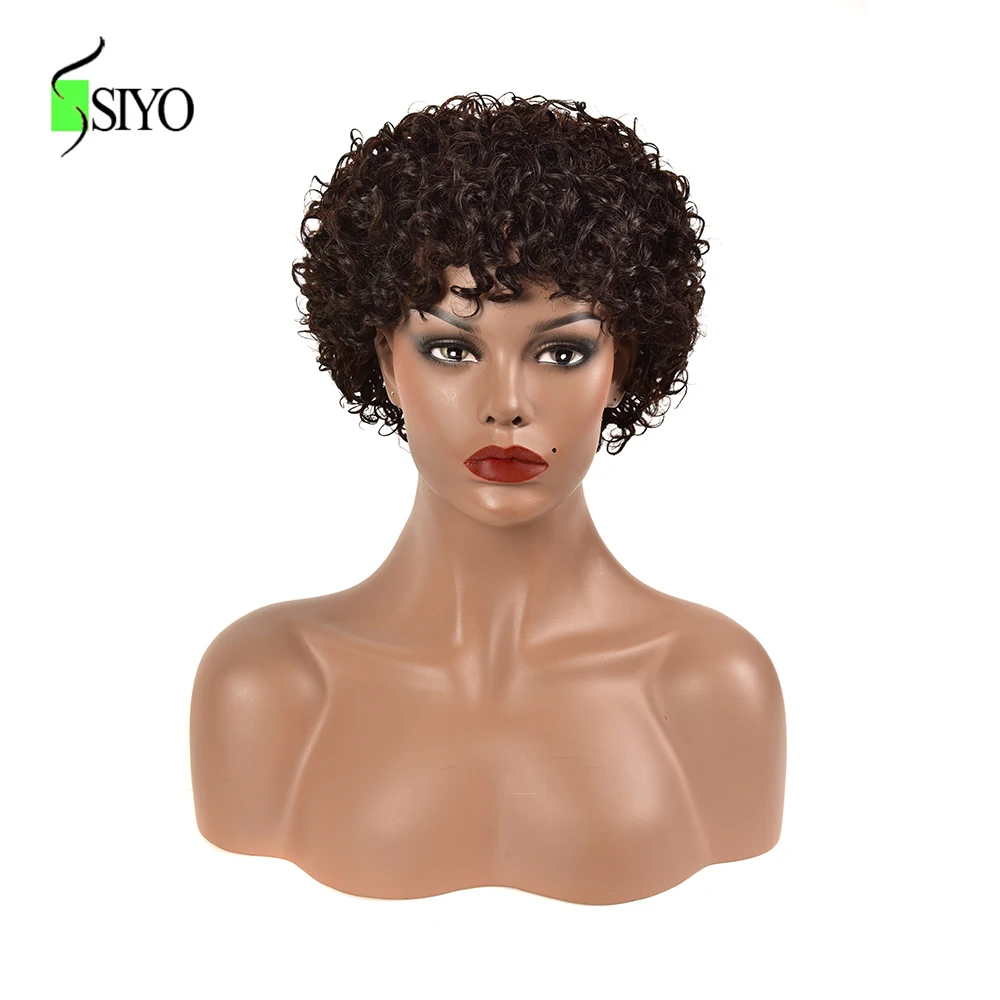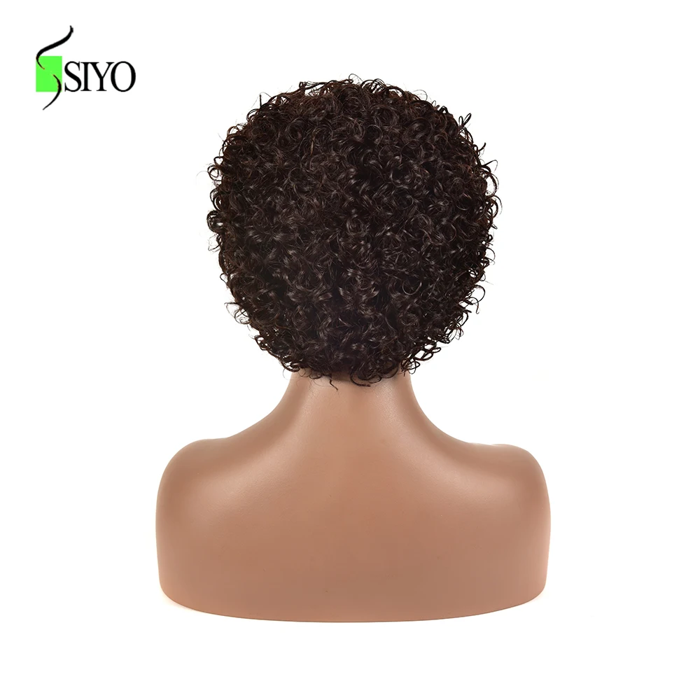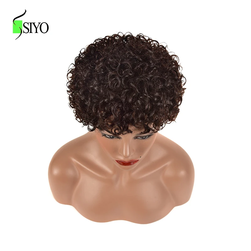 Siyo парики из волнистых волос, бразильские человеческие волосы, парик для черных женщин, короткие вьющиеся волосы 100% Реми, естественный цвет, полноразмерные парики