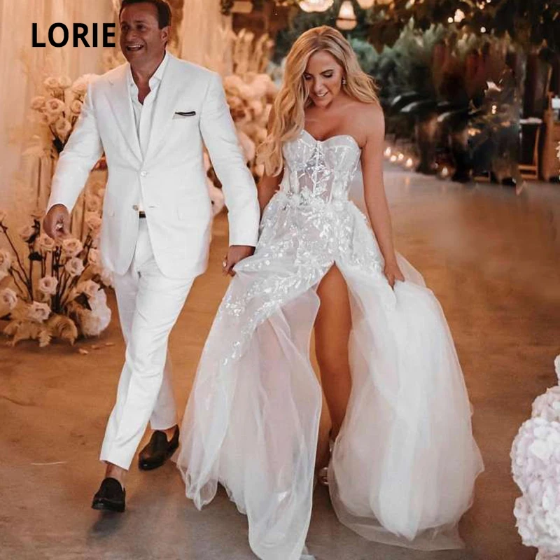 LORIE пляжные свадебные платья с разрезами по бокам, свадебное платье принцессы в богемном стиле, свадебное платье белого цвета на заказ