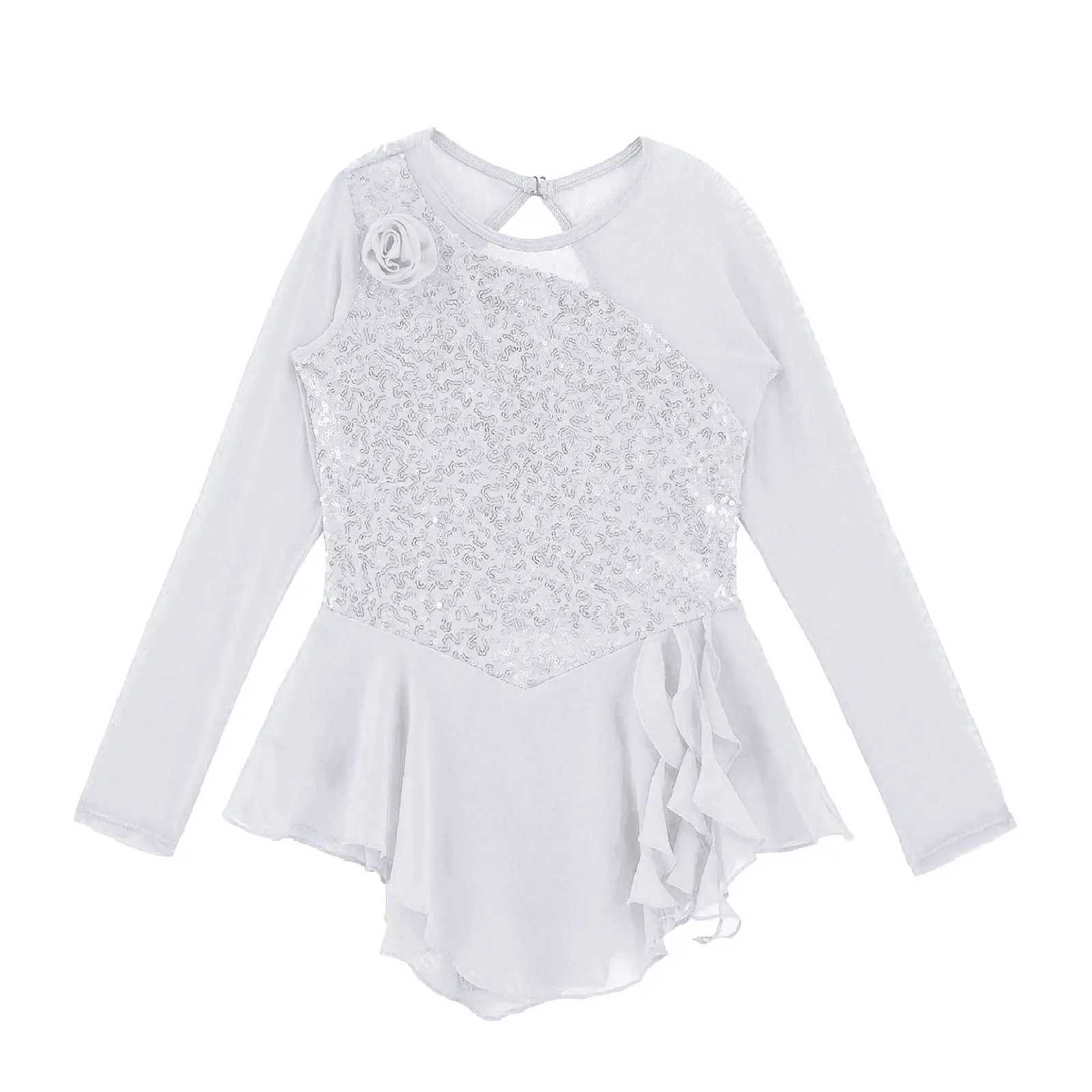 Особенности:Изготовлен из высококачественного материала, легкий светильник, мягкий, дышащий и удобный для ношения ребенка, очень гладкая поверхность на ощупь.Платье с длинными рукавами и круглым вырезом, сверкающими блестками и украшенным цветком, с большим вырезом сзади.Дизайн с модным лоскутным стилем; Многослойная неравномерная вуаль снаружи; Трусы внутри; Идеально подходит для танцев девочек.Таблица размеров означает возраст для девочек, но они предназначены только для общего руководства, рекомендуется ручная стирка в холодной воде и сушить в подвешенном состоянии.Подходит для любого случая, праздника, повседневной жизни, танцевальной одежды для балета, милой одежды, сцены, соревнований, игр и т. д.