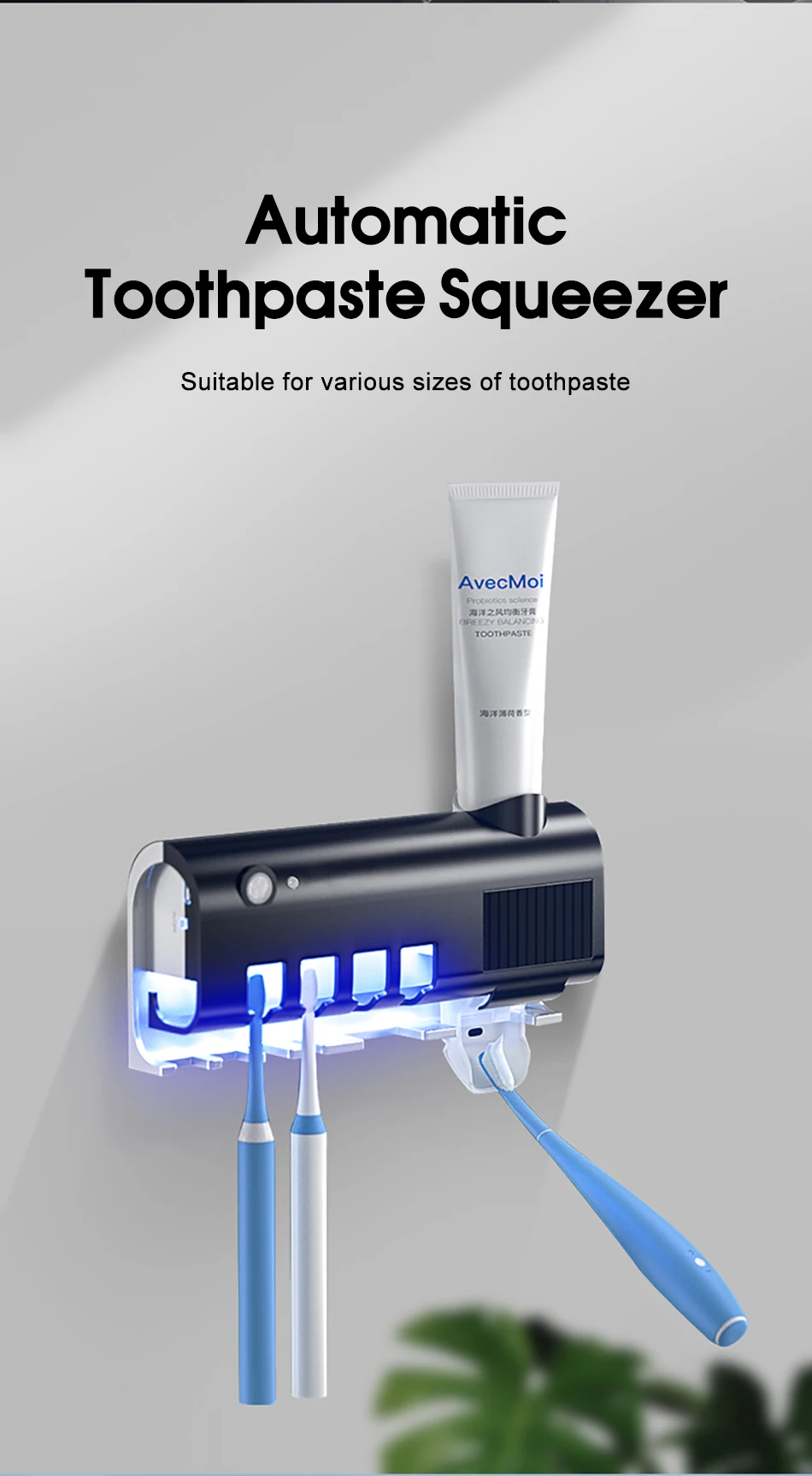 Держатель для зубных щеток на солнечной батарее, умный стерилизатор, автоматический настенный дозатор зубной пасты, наборы аксессуаров для дома и ванной комнаты