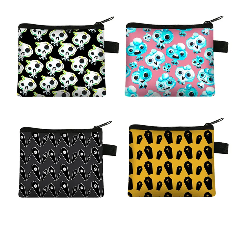 Кошелек Хэллоуин с узором из мертвой гробы, кошелек с монетницей ведьмойВуду для мальчиков и девочек, сумка для конфет с призраком, женские сумки с держателем для карт и ключей