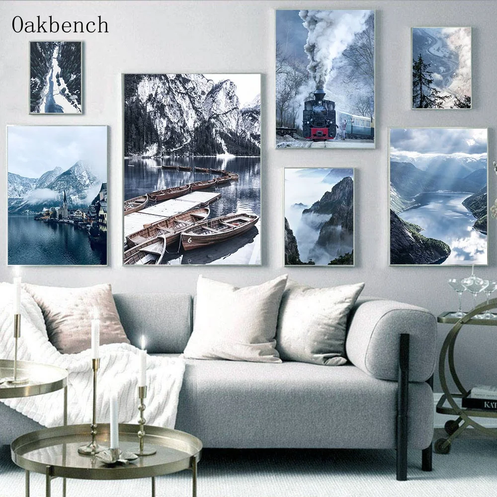 Зимний Снежный холст Художественная живопись озера плакат с изображ...