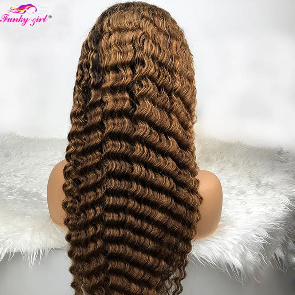 Парик с эффектом омбре из кружевной части, бразильские прямые парики из человеческих волос на сетке, медовые светлые цветные парики с глубокой волной на сетке для чернокожих женщин