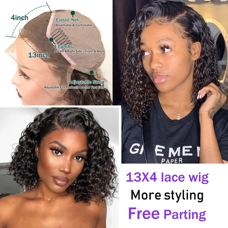 Короткие вьющиеся волосы 13X 4, парики из человеческих волос на сетке спереди для черных женщин, парик с вырезами фальшивых волос спереди, цветной парик с застежкой 4x4, волосы doors