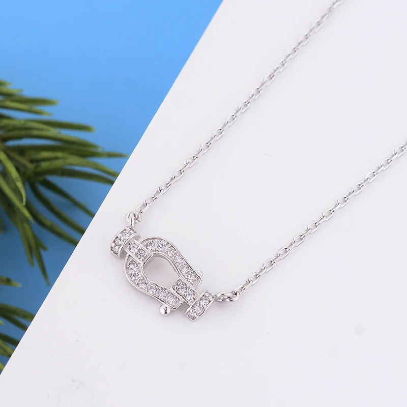 Ожерелье в форме подковы из серебра 100% пробы с фианитами AAA
