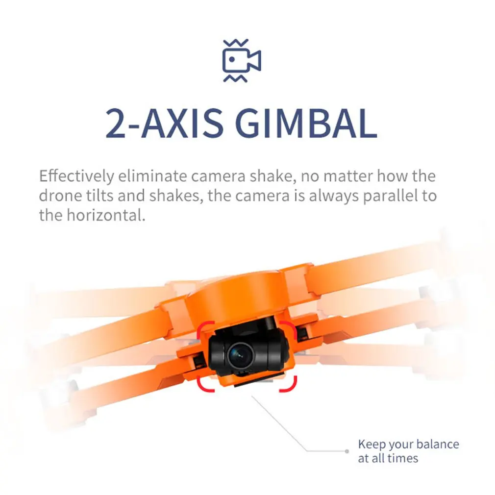 5. Двухосный самостабилизирующий шарнир эффективно устраняет тряску камеры, независимо от того, как Дрон наклоняется и трясется, камера всегда остается параллельной горизонтали.