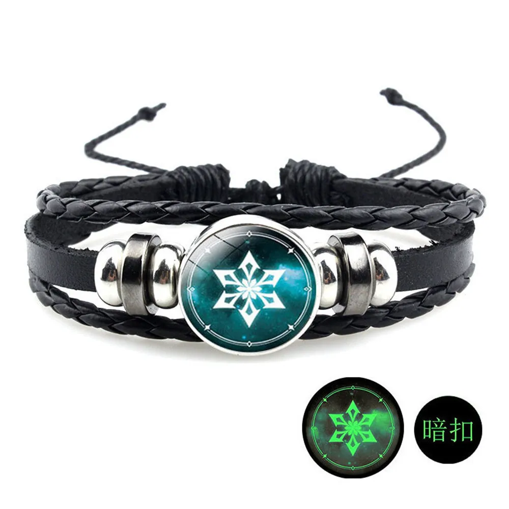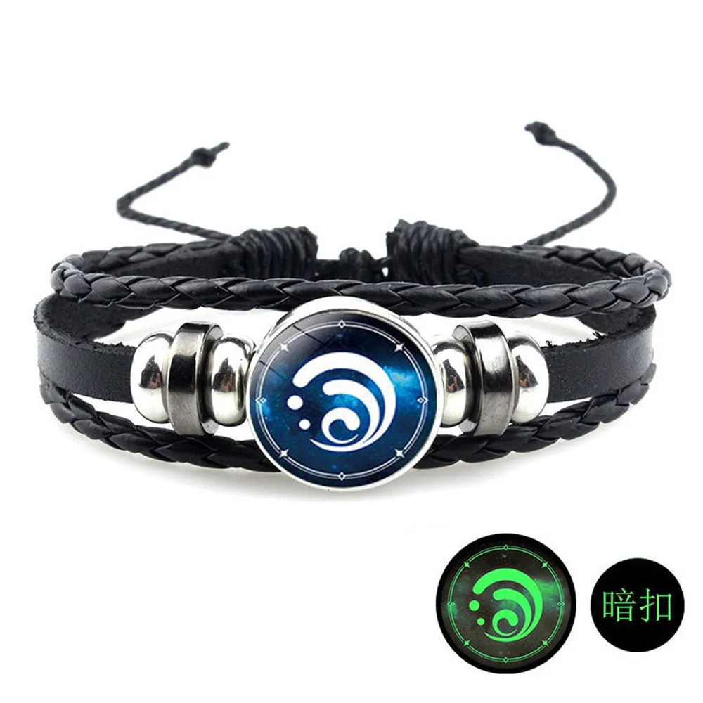 Мужской регулируемый браслет Genshin Impact, светящийся кожаный браслет глаз Бога в винтажном стиле, ювелирное изделие для косплея, подарок