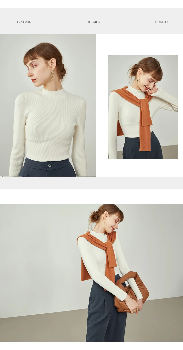 Женский вязаный шерстяной свитер FSLE с полувысоким воротом, черный однотонный плотный свитер с высоким воротом, белый пуловер машинной стирки