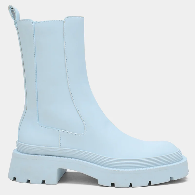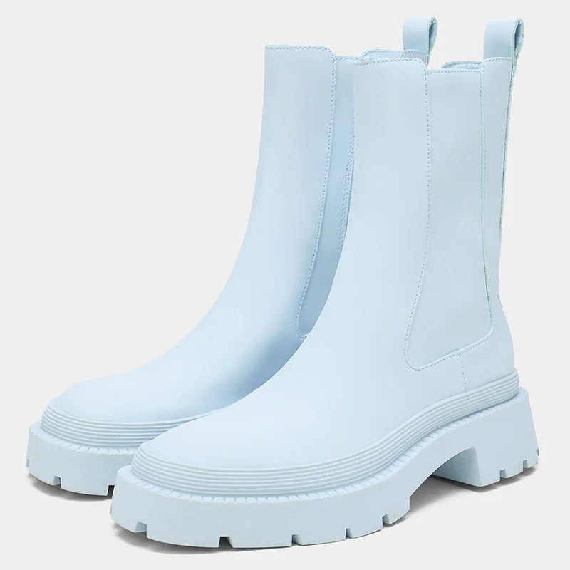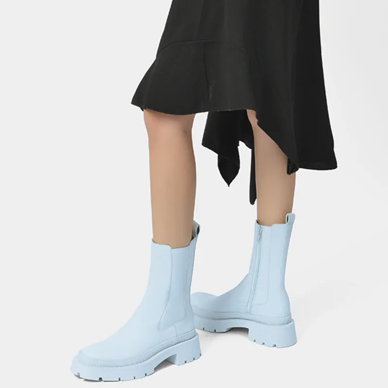 Женские ботинки до середины икры, синие ботинки челси на толстой платформе, с круглым носком, модные ботинки мартинсы в британском стиле, новинка 2022