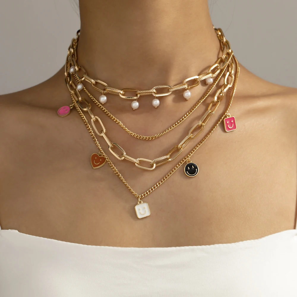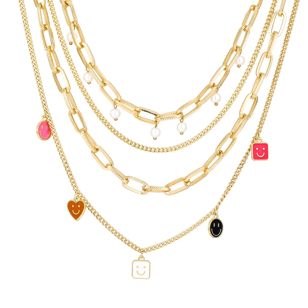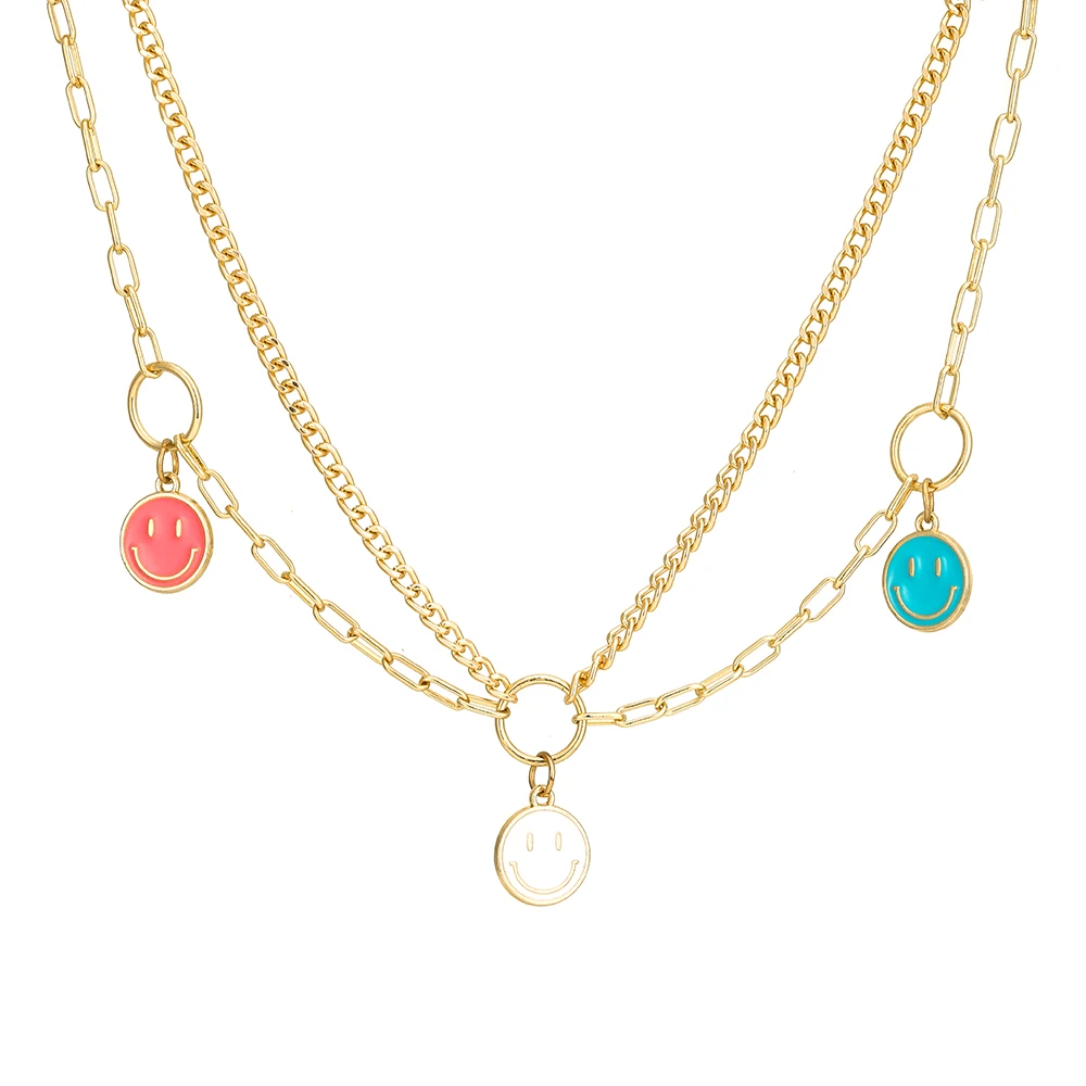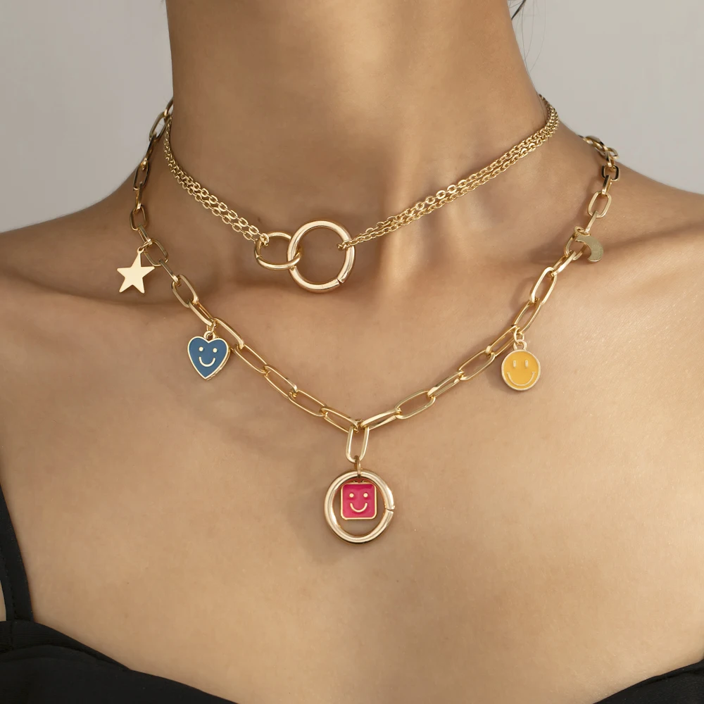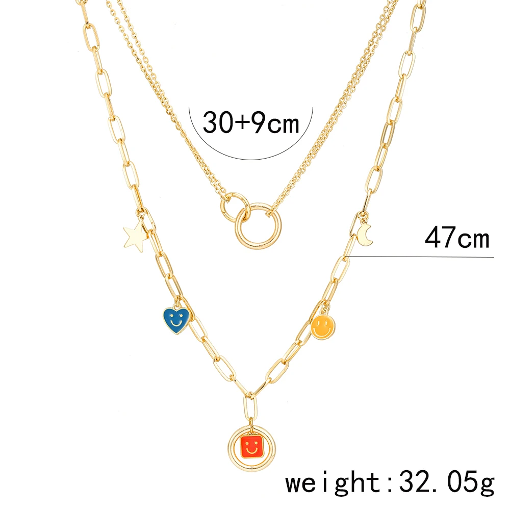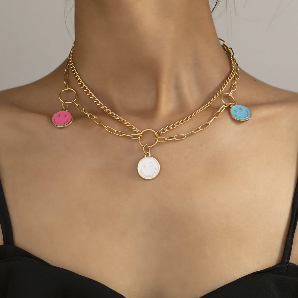 Ожерелье женское многослойное с эмалью и подвеской в виде смайлика