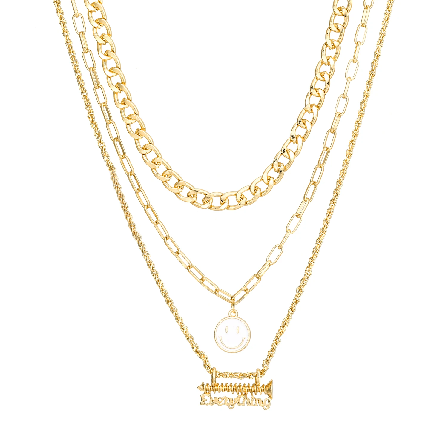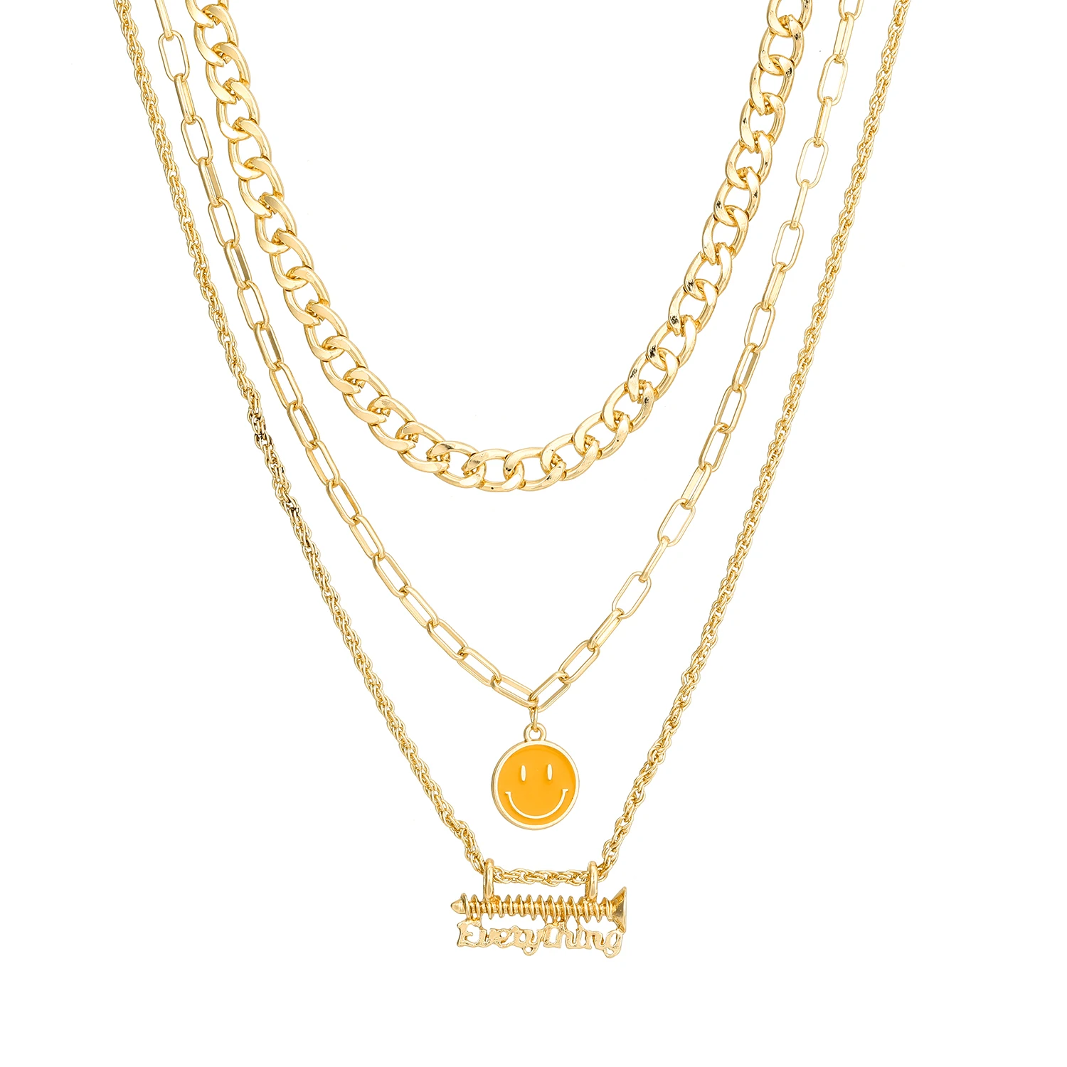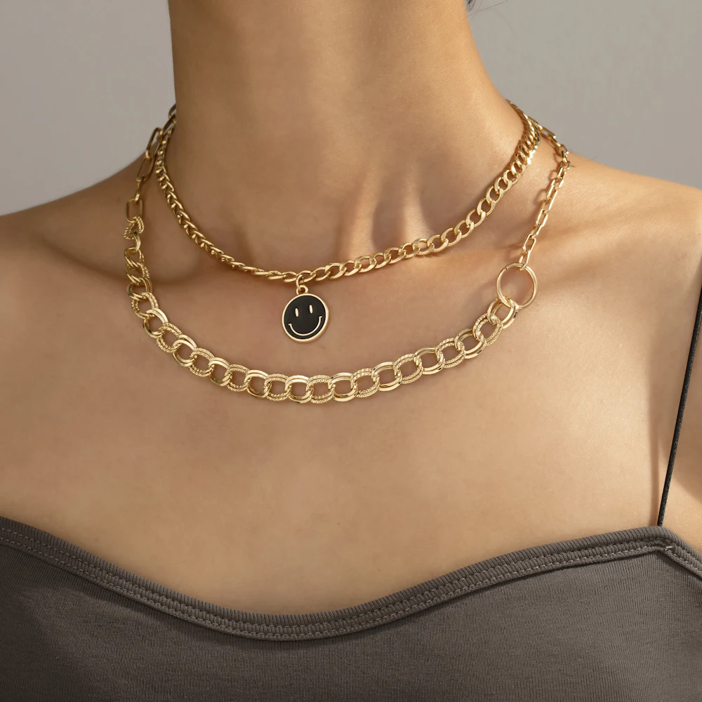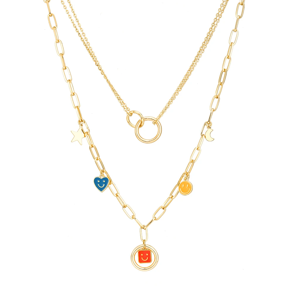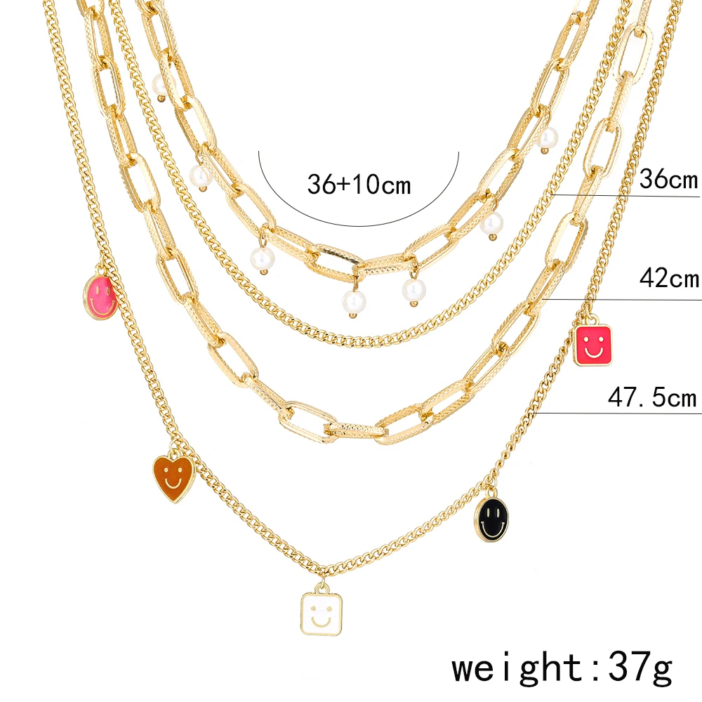 Ожерелье женское многослойное с эмалью и подвеской в виде смайлика