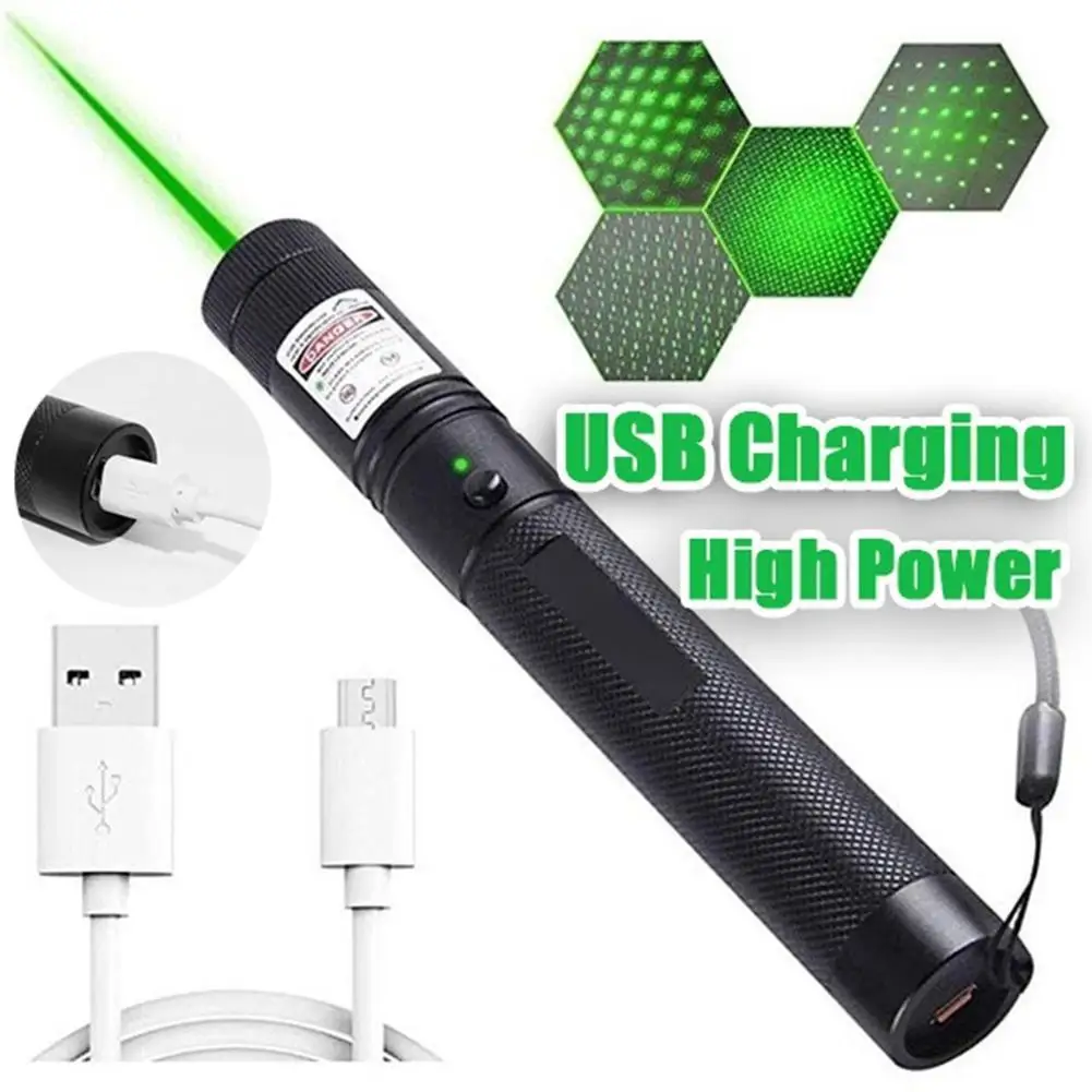 Мощная яркая указка 5 мВт, зеленая, синяя, красная светильник чечная светящаяся ручка, регулируемая, высокая мощность, портативная, USB, перезаряжаемая, Видимый луч света