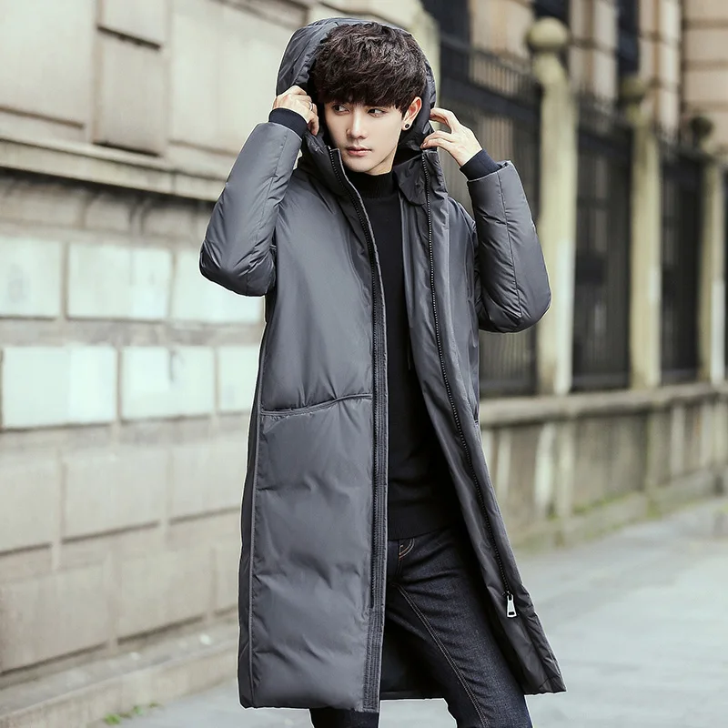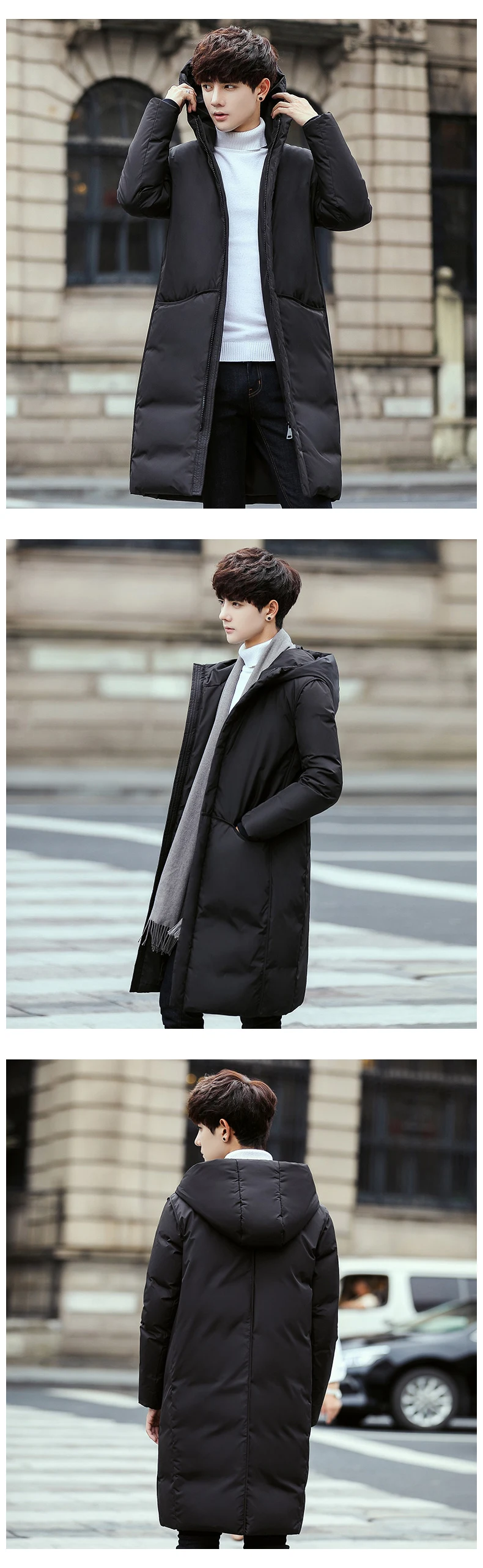Мужская длинная куртка на утином пуху с капюшоном, Мужская Толстая ...