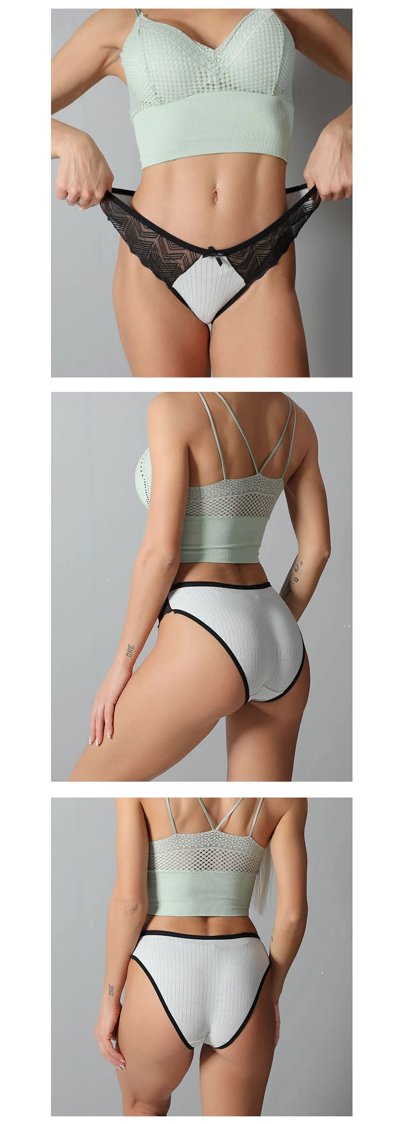 3 шт., женские хлопковые трусы с кружевом