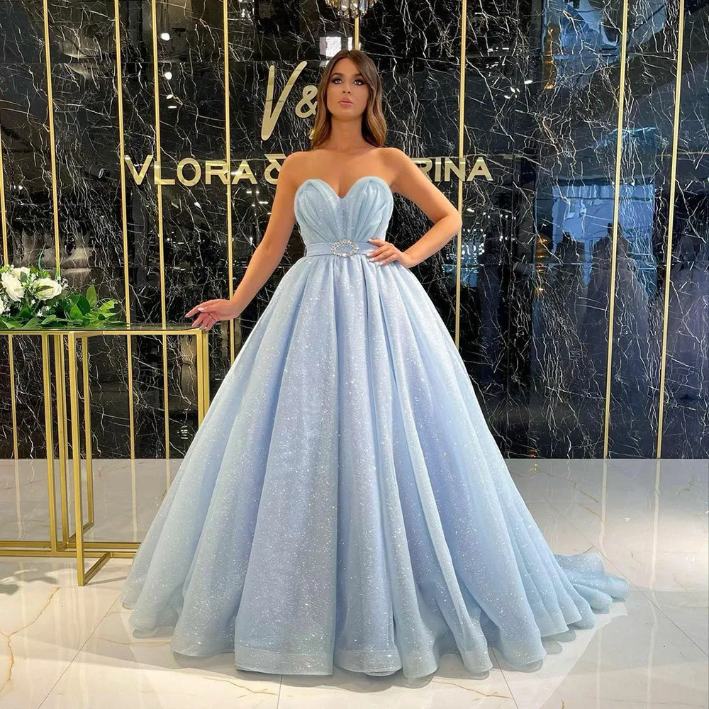 Великолепное небесно-Голубое Бальное Платье BridalAffair, платье для выпускного вечера, сверкающие вечерние платья с открытой спиной для вечеринки