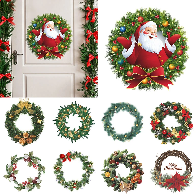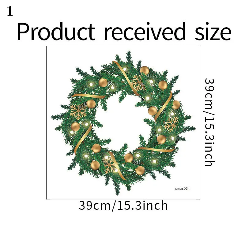 Рождественский венок, стильные настенные наклейки, постер на окно, стекло, дверь, домашний декор, 3D ПВХ водонепроницаемый Хрустальный венок, настенные декорации 39*39 см