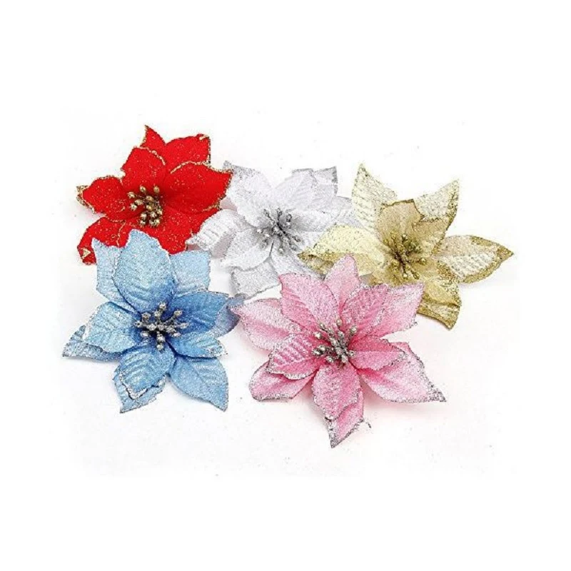 Искусственные цветы с блестками, пуансеттийские цветы, Рождественск...