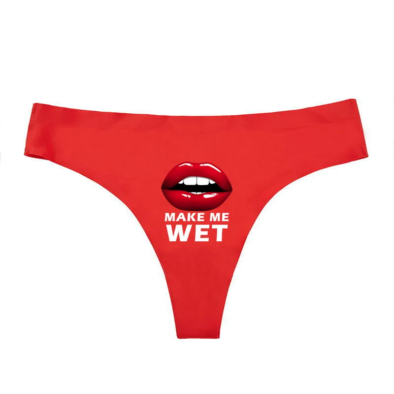 Сексуальные женские трусики с забавными красными губами MAKE ME, нижнее белье для женщин, женские трусики для девушек, трусики, женские стринги с Т-образной спиной, стринги для женщин
