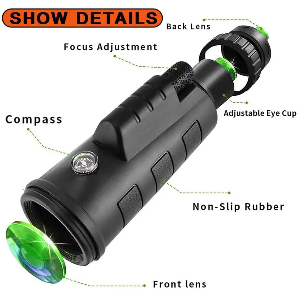 Портативный монокулярный телескоп 40X60, водонепроницаемый Монокуляр высокой мощности для путешествий за дикой природой и наблюдения за птицами