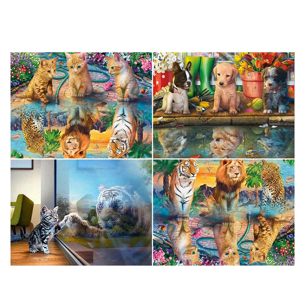 Алмазная 5d картина сделай сам, вышивка с животными, квадратная Круглая Мозаика С Рисунком Тигра, Льва, отражения, вышивка крестиком, декоративное искусство, хобби icon star icon star icon star icon star icon star