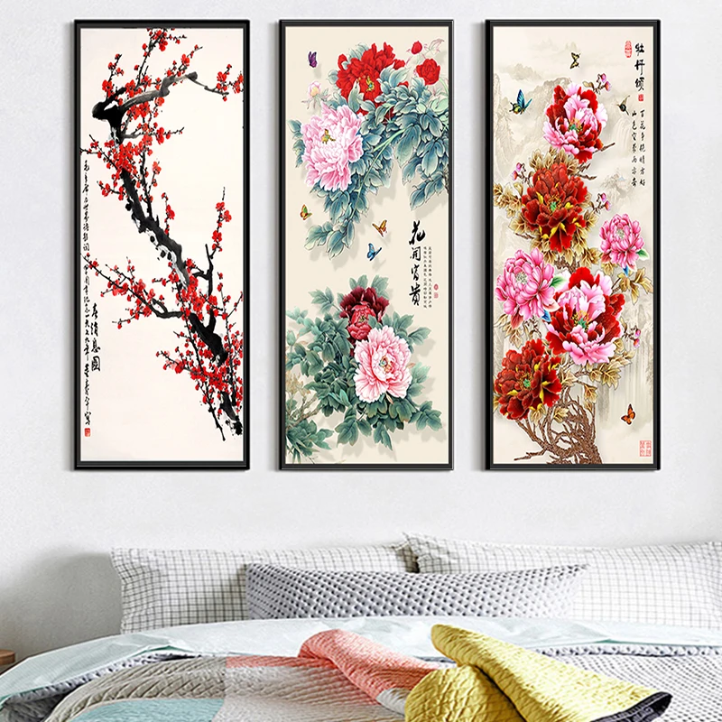 Винтажная живопись в китайском стиле Лотос пион плакат с алфавитом ...