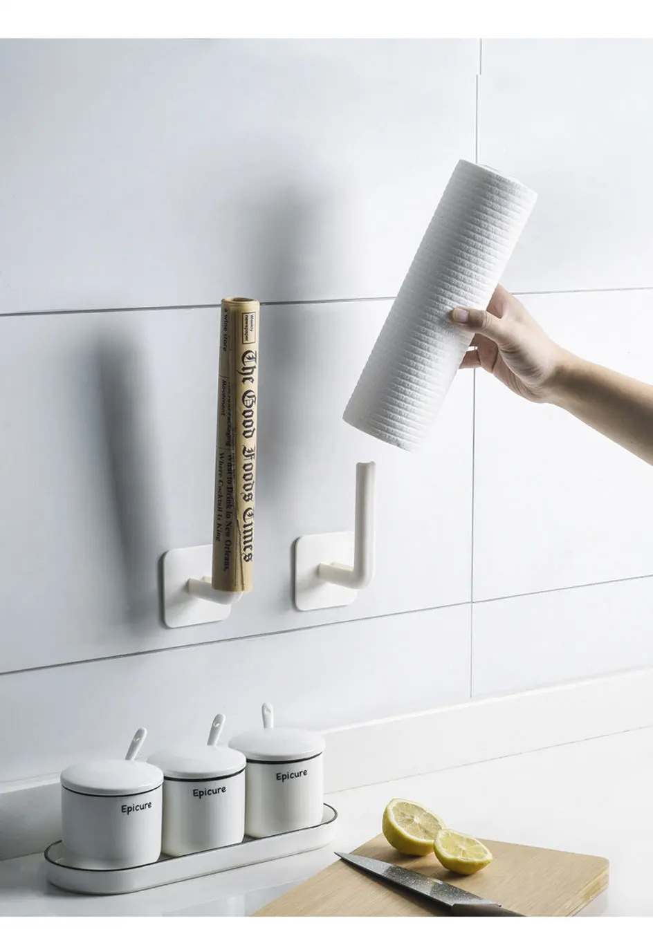 Многофункциональный держатель-вешалка, кухонный органайзер, самоклеящаяся вешалка для шкафа, буфета, рулона бумаги, полотенец, вешалка для полотенец для ванной комнаты