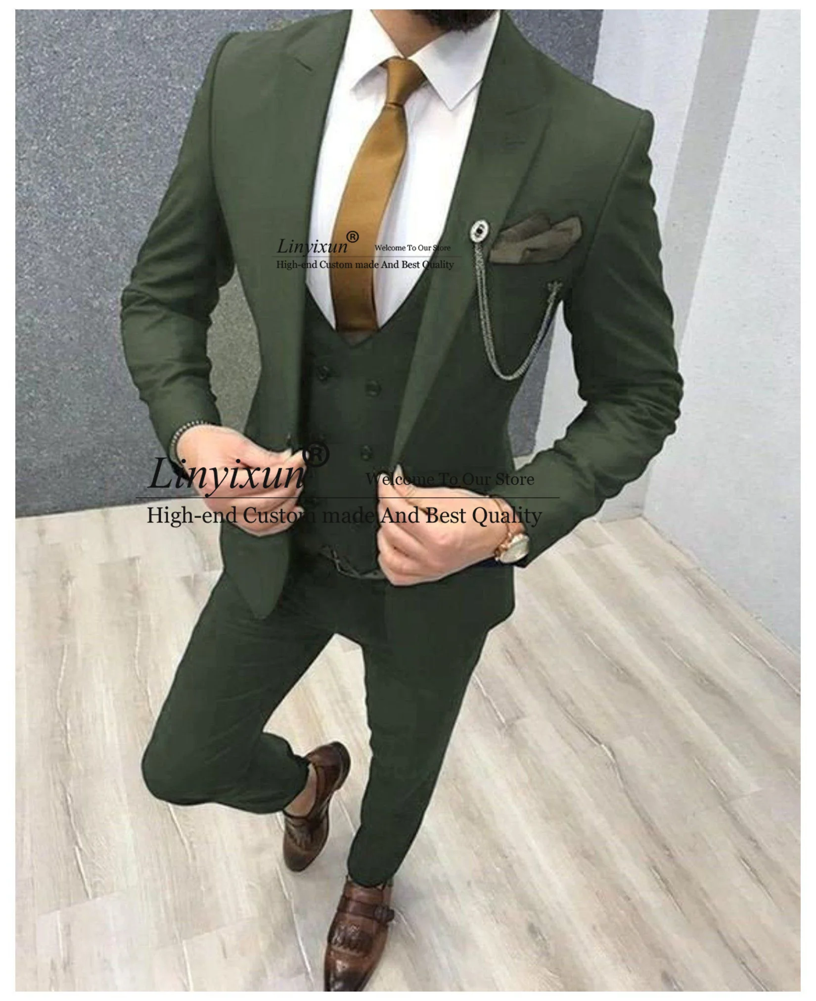 Мужской повседневный костюм из трех предметов, темно-синий деловой приталенный костюм с пиджаком, отложным воротником и жилетом, для свадьбы