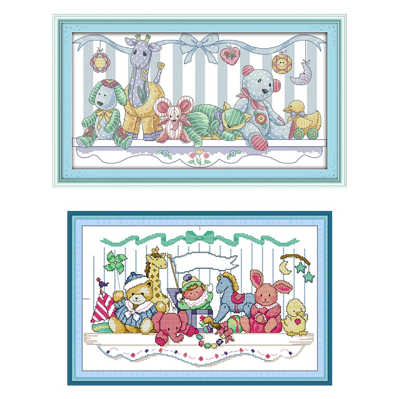 Мультяшная плюшевая игрушка, штампованная печать, Набор для вышивки крестиком 14CT 11CT, зеркальная и ниточная вышивка DMC, хлопковая нить, рукоделие