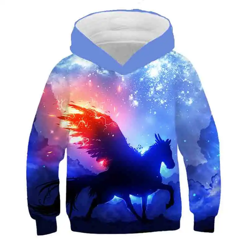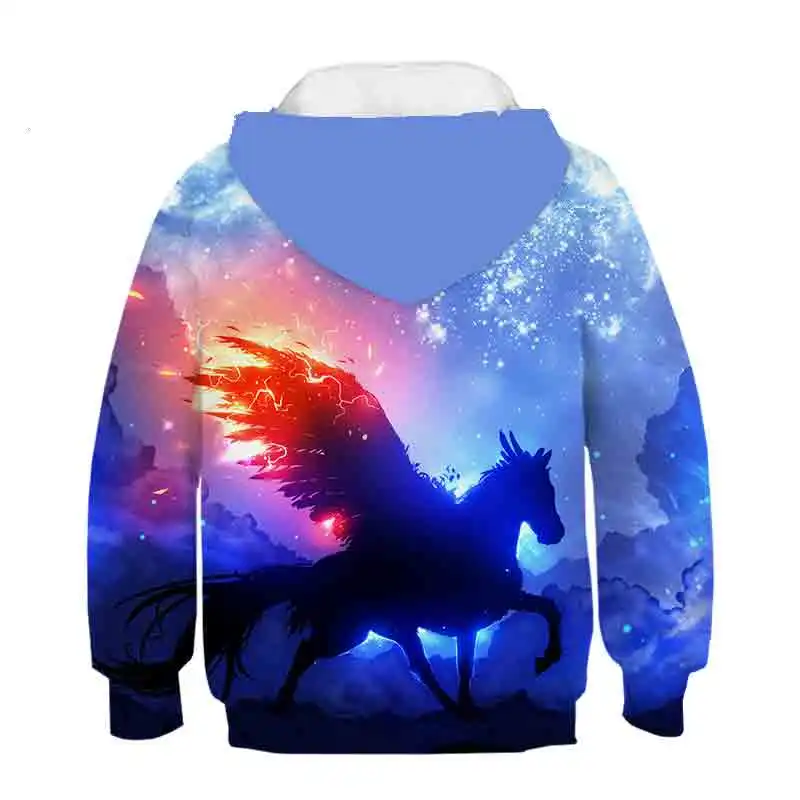 Детская толстовка с 3D-принтом единорога, Детская толстовка большого размера для девочек, уличный пуловер, детский спортивный топ с капюшоном в стиле хип-хоп для мальчиков