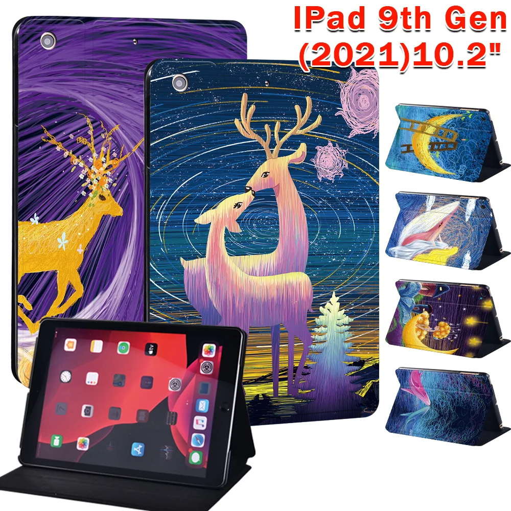 Чехол для Apple IPad (2021) 9-го поколения, 10,2 дюйма, кожаный чехол-подставка с рисунком для планшета ipad 9