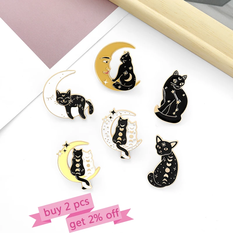 6 стилей Лунокот эмали шпильками черные Ghotic фаза Луны броши знач...