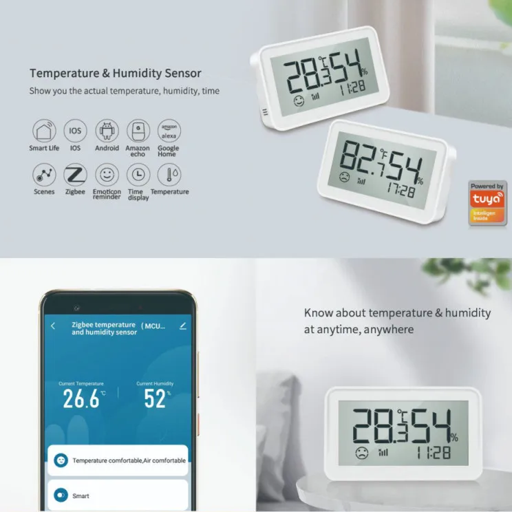 Датчик подключен к приложению (smart life/TUYA smart) для автоматической синхронизации времени на мобильный телефон. В доме есть дополнительный дисплей времени.