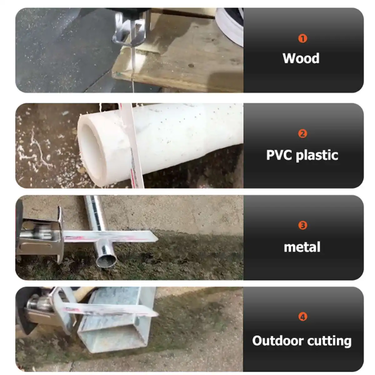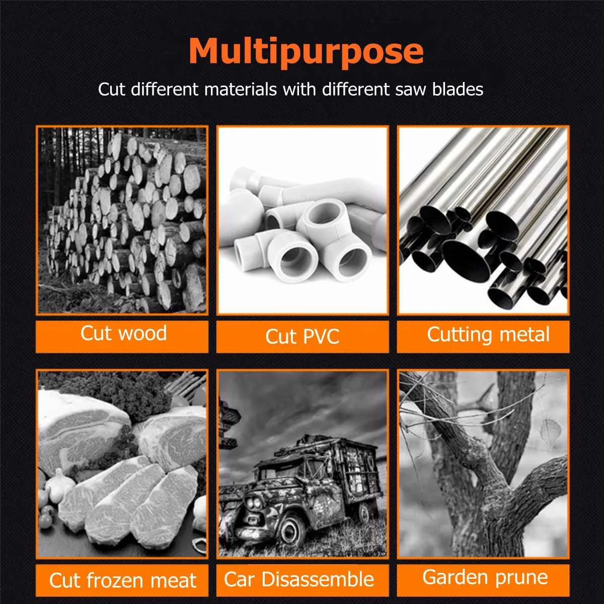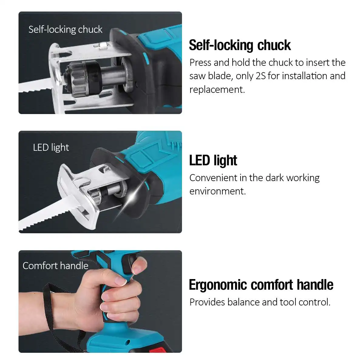 Содержимое посылка1 x сабельная пила1 x картонная коробка4 пилы1 х батарея/2 х батарея/Нет батареи (опционально)1 х зарядное устройство