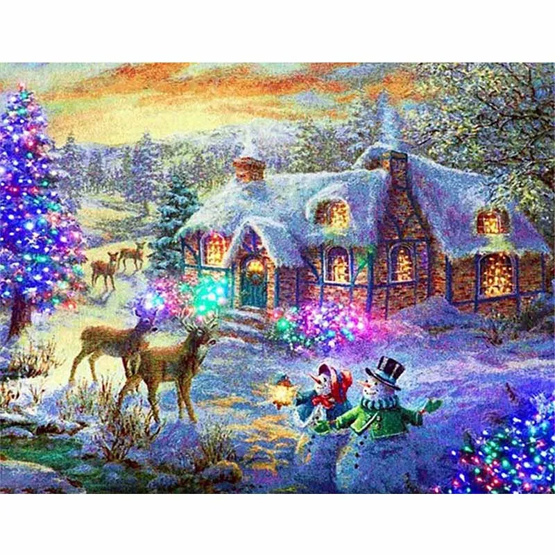 Зимняя живописная алмазная живопись Зимний Рождественский Снеговик ...