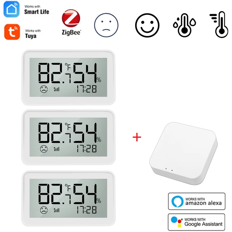 Датчик температуры и влажности Tuya Zigbee, умный термометр для дома, работает с Alexa