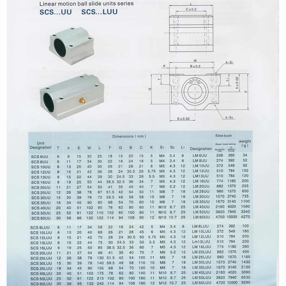 4 шт. SCS8UU SC10UU SCS12UU SCS16UU SC20UU линейного движения шариковых подшипников Блокировка скольжения линейный стержень CNC 3D принтер детали