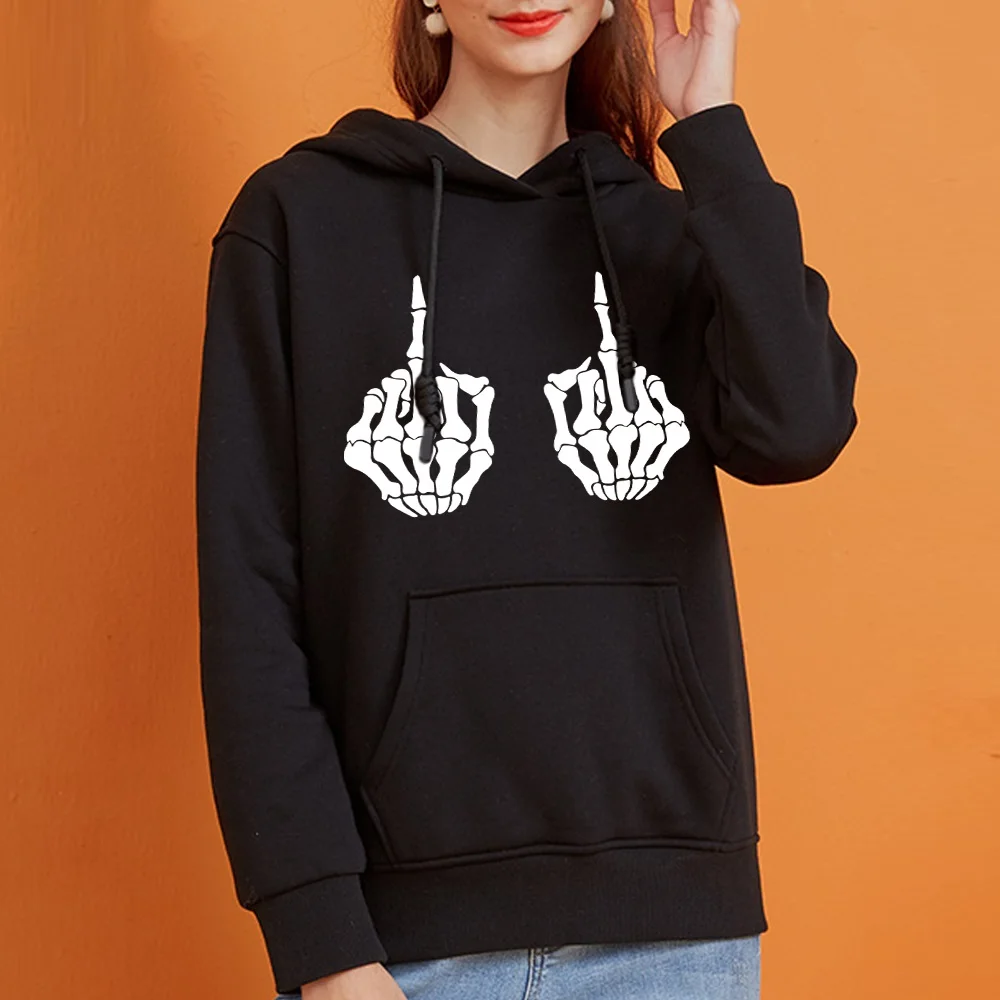 Женская одежда с принтом, черная модная свободная толстовка с капюш...