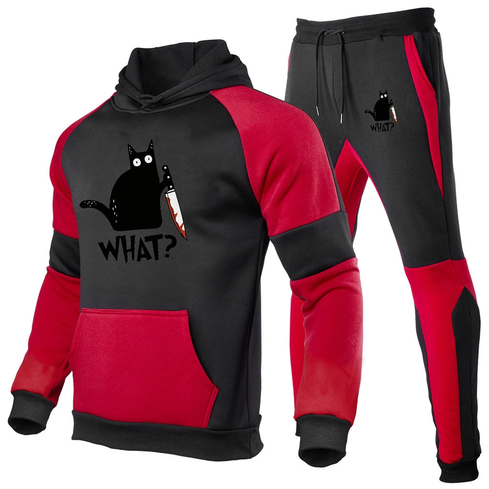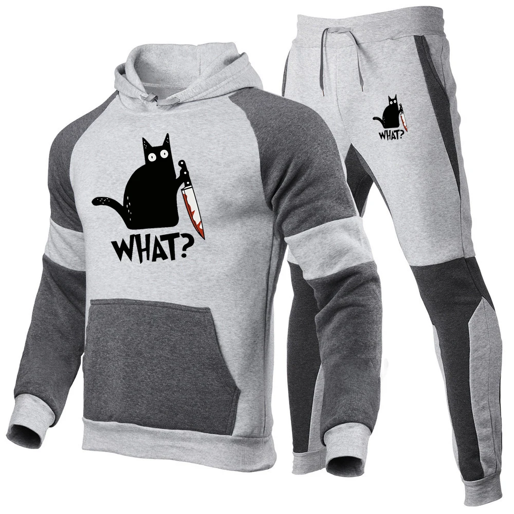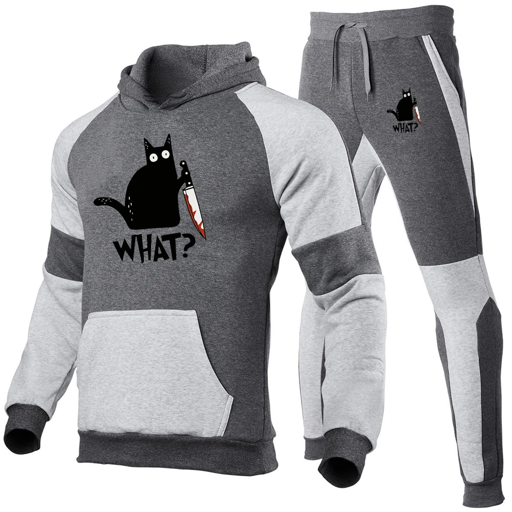 Осенняя спортивная одежда 2021 с мультяшным черным котом, Мужская модная толстовка на молнии, толстовка с капюшоном, куртка + брюки, удобные костюмы одежды