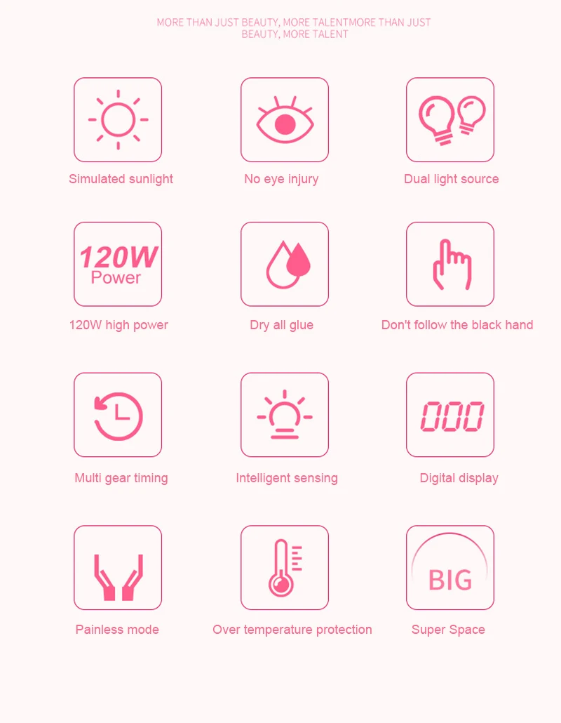 Может использоваться для сушки основного лака для ногтей, лака для ногтей, фототерапевтического клея и т. д.