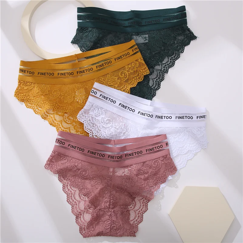 Трусики женские FINETOO, кружевные, прозрачные, с низкой посадкой, кружевные трусики пикантные