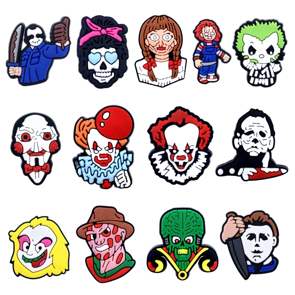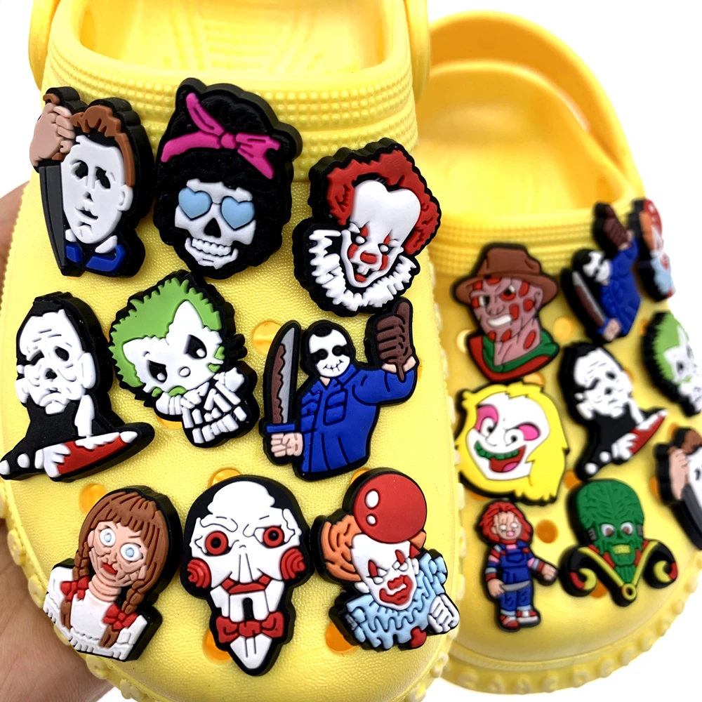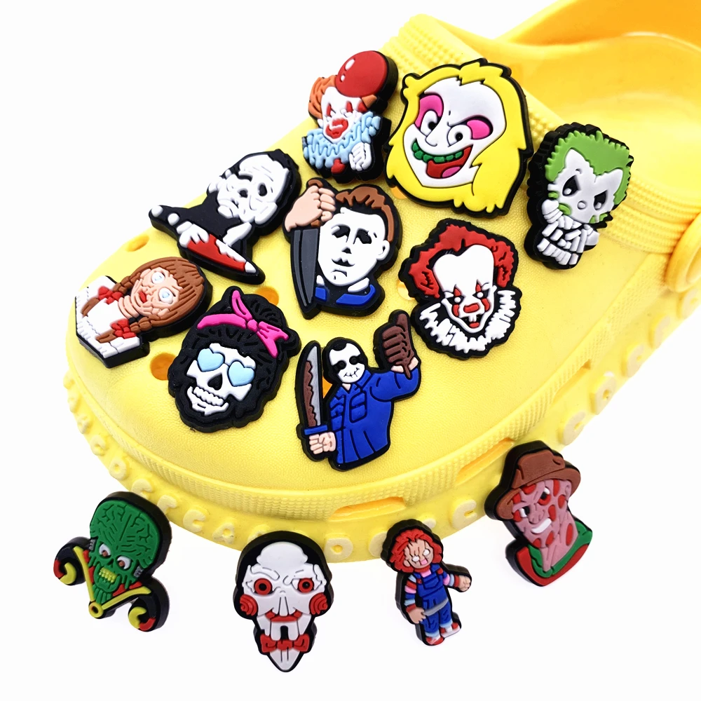 Лидер продаж, 1 шт., амулеты из серии ужасов для обуви, персонажи мультфильмов, садовая обувь, Кроксы, аксессуары для Хэллоуина, Пряжка для подарка на вечеринку
