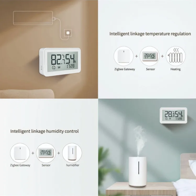 Через приложение «Мобильный телефон» вы можете использовать его с другими смарт-устройствами для создания собственной смарт-сцены. В соответствии с датчиком температуры и влажности, вы можете регулировать влажность и температуру в окружающей среде.