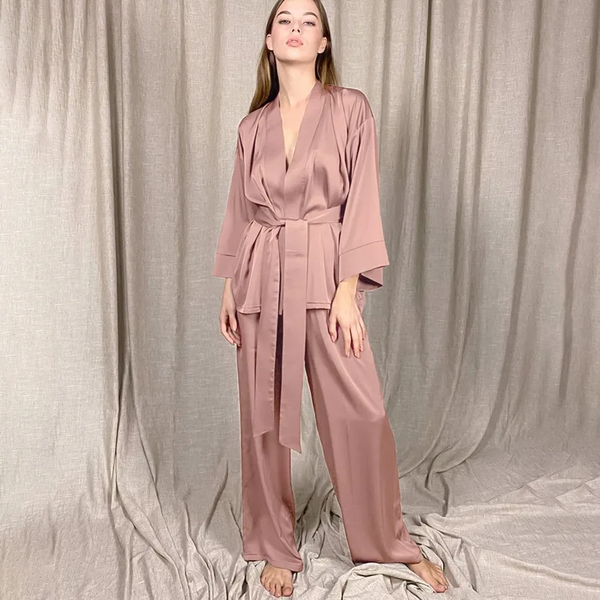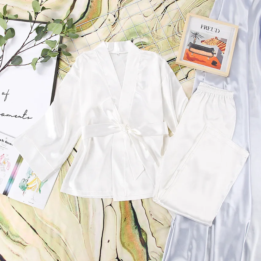 Женская пижама, осенний комплект домашней одежды, Атласный халат с ...