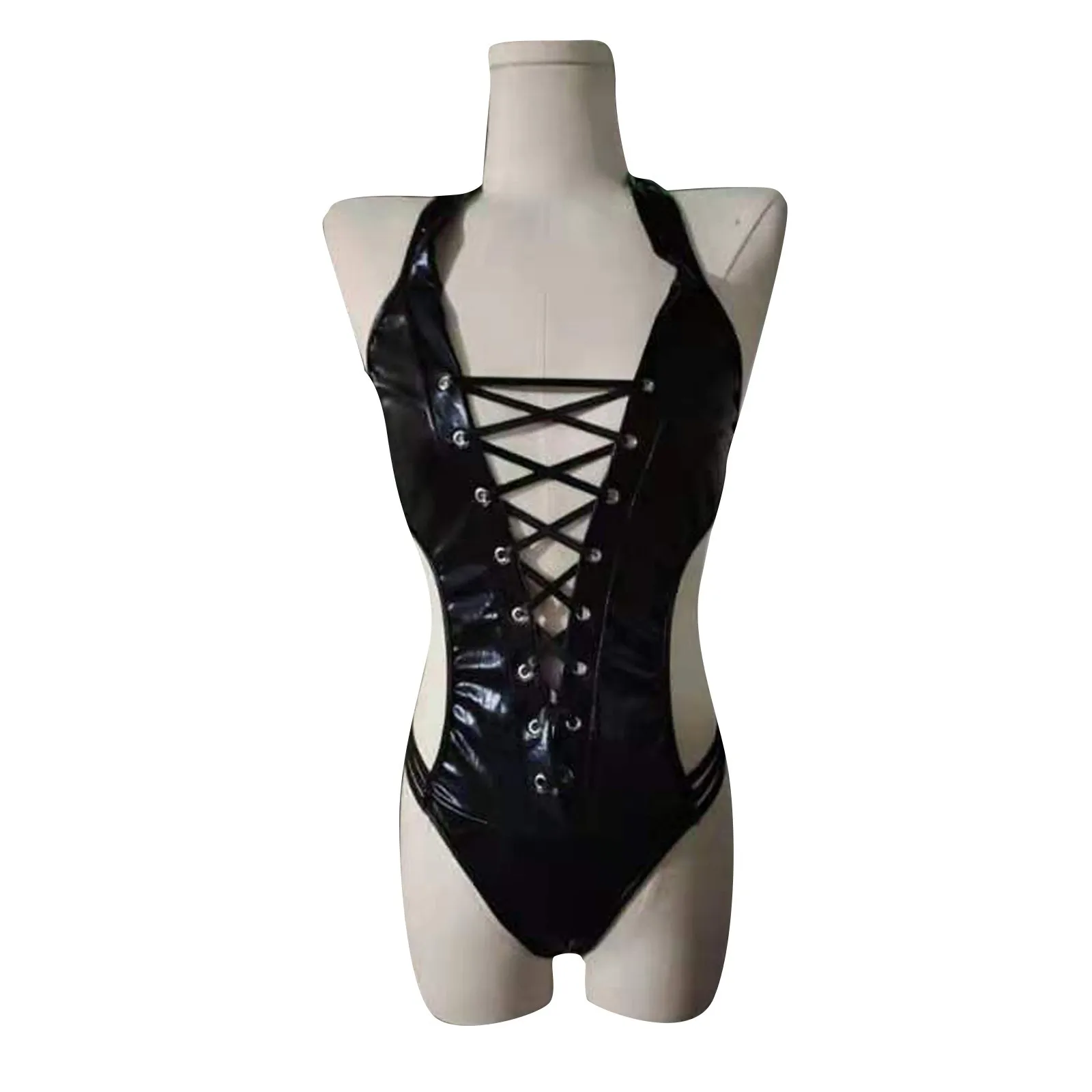 Женское сексуальное нижнее белье из лакированной кожи, боди в готич...